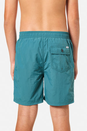 The Boys Poolside Volley remains a Katin fan favorite for its comfort and versatility. Made from our classic nylon, featuring front slash pockets, an elastic waist, mesh brief lining and an interior stash pocket for the beach and beyond.