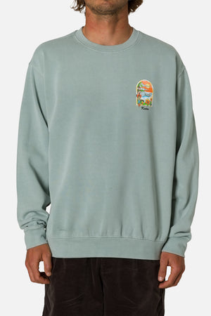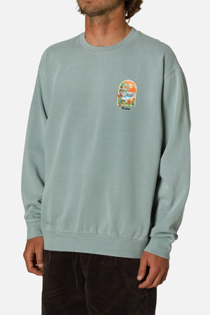 The Salvador Crewneck features artwork inspired by vintage tropical postcards, crafted from warm cotton-blend fleece with a soft, washed feel.
