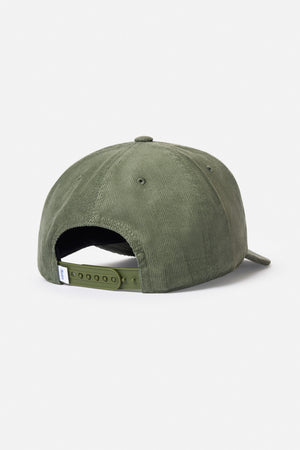 The Stroll II Hat features a custom palm tree graphic applique, and is made from 100% cotton corduroy with a snapback closure.
