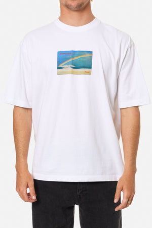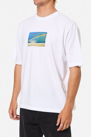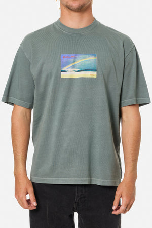 With a custom graphic inspired by vintage tropical postcards, the Greetings Box Fit Tee is constructed of ultra-soft, 100% Organic Cotton that has been custom-dyed for effortless style and extended comfort.