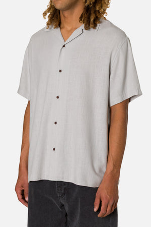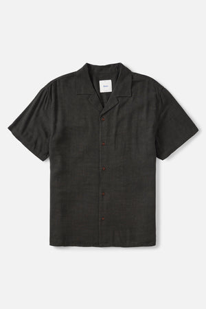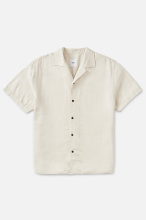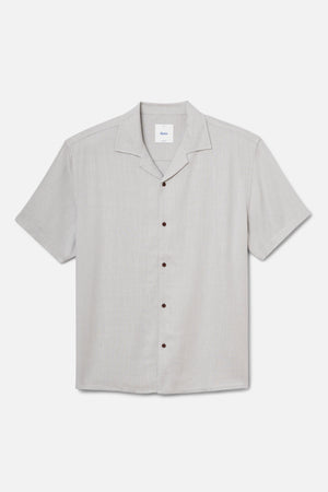 The Teller Shirt blends rayon and linen in a slub texture that moves freely and stays cool. Its relaxed camp collar keeps the tone laid back.
