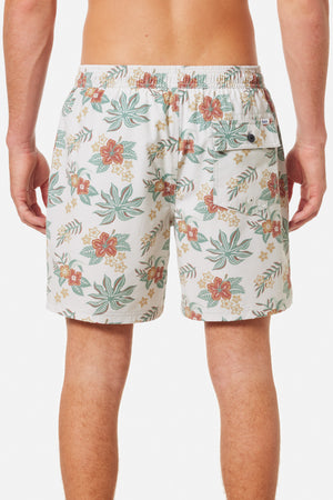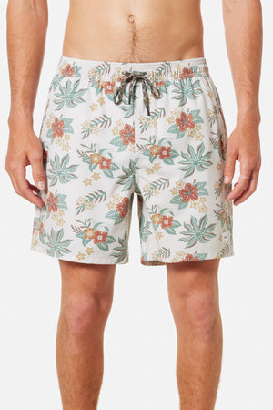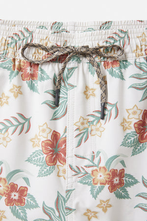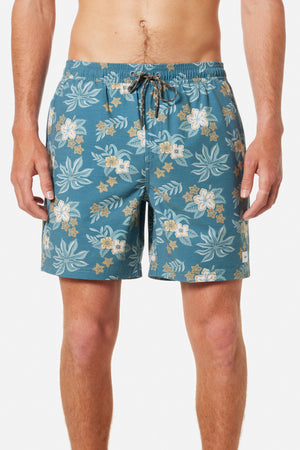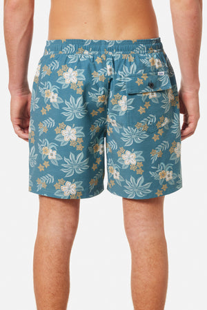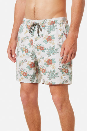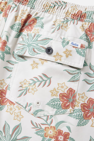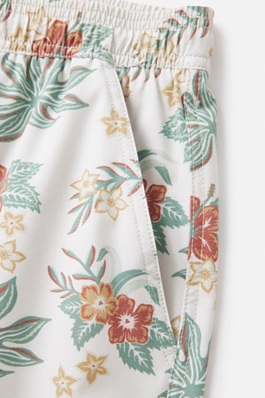 Featuring a vintage Hawaiian floral pattern, the Benji Volley comes in a new tri-blend fabric, featuring Repreve recycled polyester. Front slash pockets, an elastic waist, mesh brief lining and an interior stash pocket, ready for the beach or day-to-day.