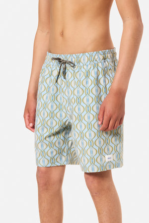 Featuring a symmetry pattern inspired by the couches and wallpapers of the 70's, the Boys Floyd Volley comes in a new tri-blend fabric, featuring Repreve recycled polyester. Front slash pockets, an elastic waist, mesh lining and an interior stash pocket, ready for the beach or day-to-day.