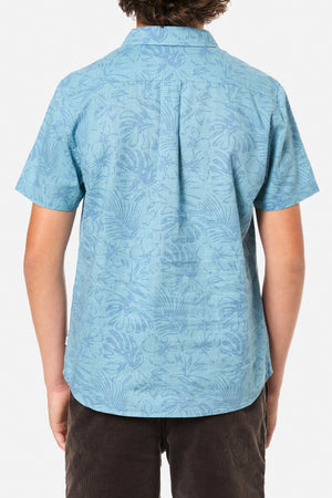 The Boys Moco Shirt features a floral graphic inspired by the islands atop a breathable cotton linen blend.