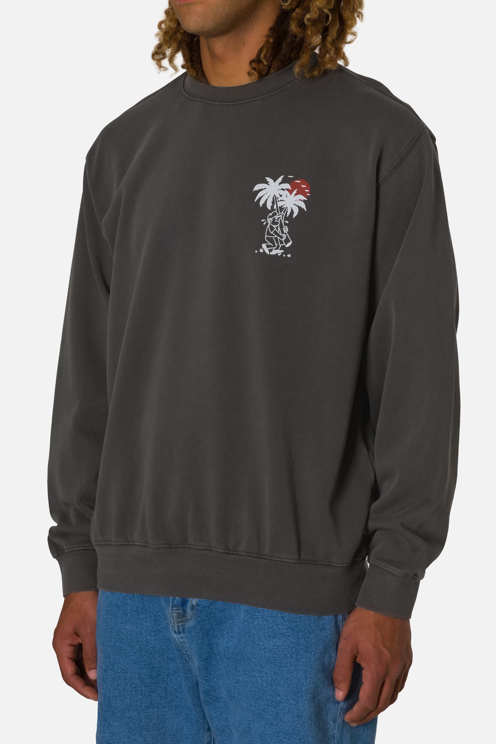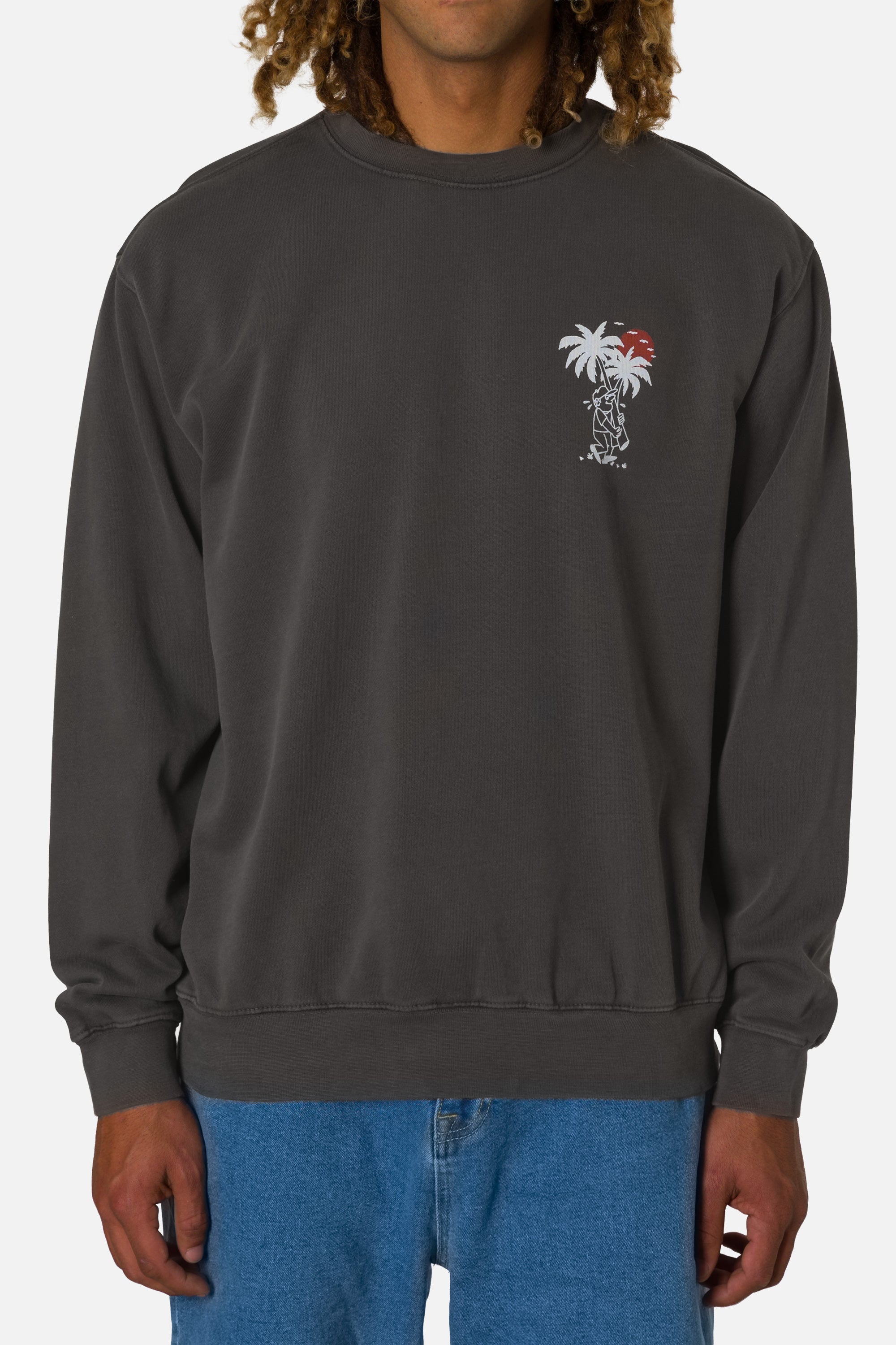 The Delivery Crewneck carries a local-business illustration printed on mid-weight cotton-blend fleece, giving it a relaxed, everyday feel.