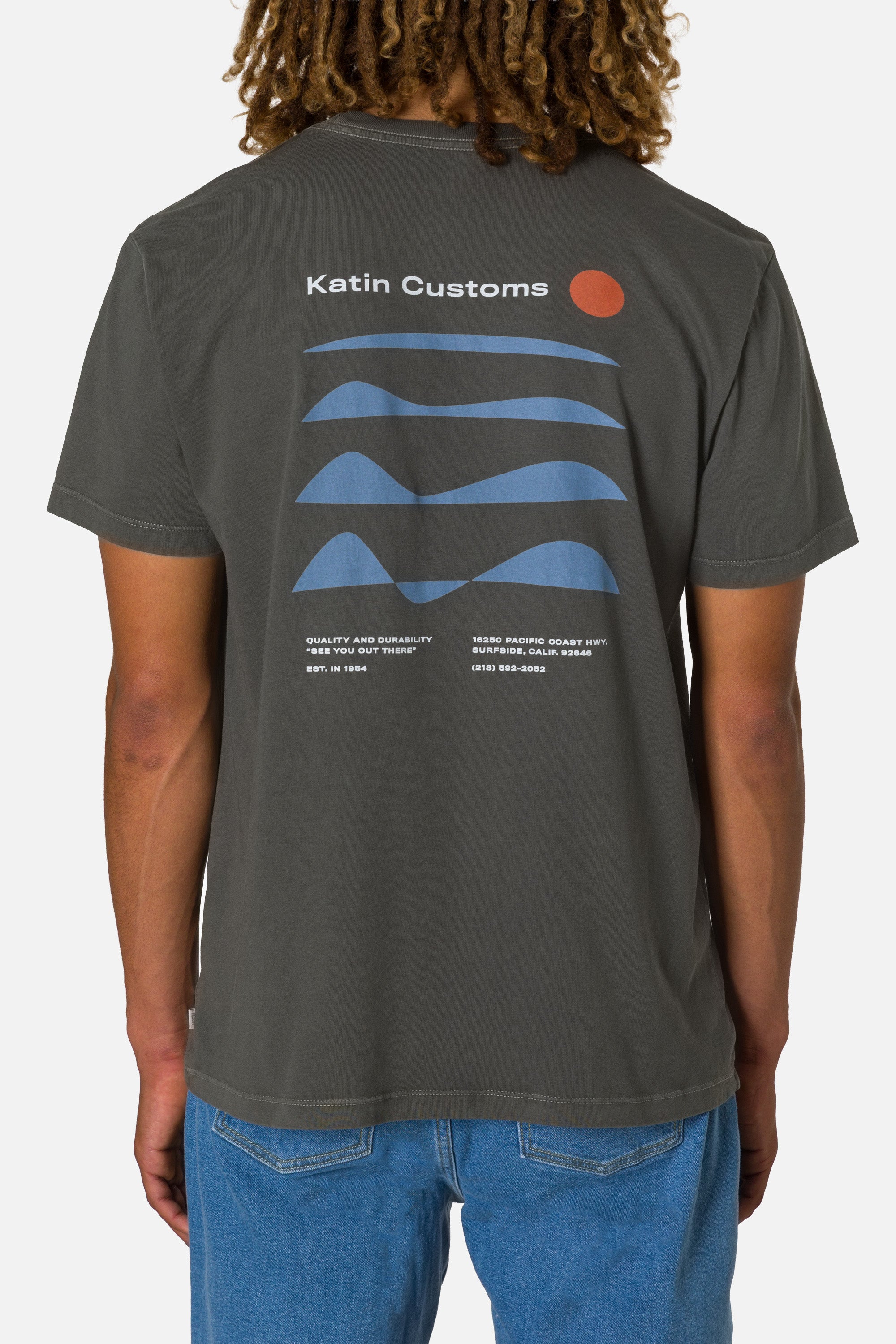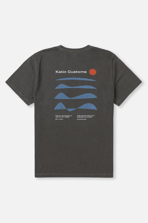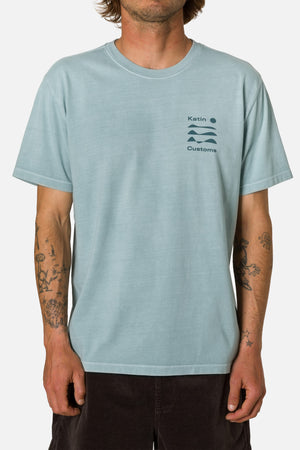 The Frequency Tee features a minimalist sunset graphic on 100% organic cotton, custom dyed for a comfortable, easy feel.