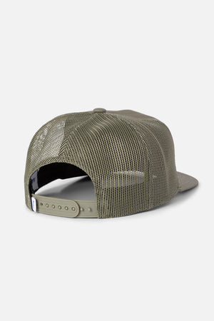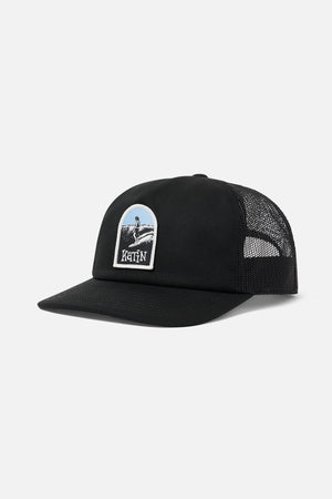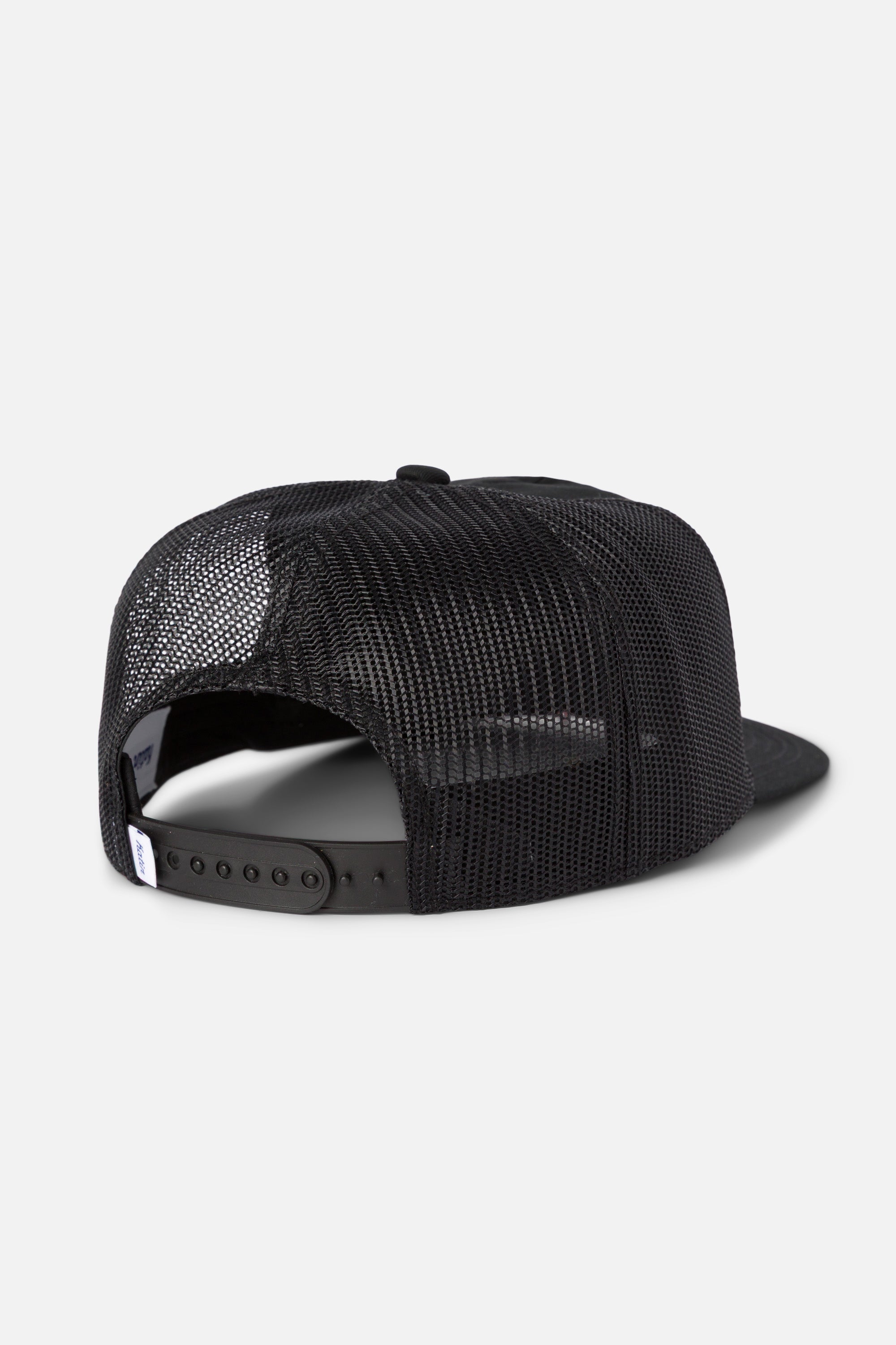 The Saxon Trucker Hat features a custom patch, the hat is made from cotton ctwill with a polyester mesh back and snapback closure.
