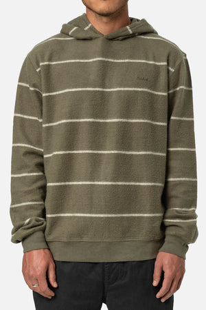 The Parks Hood is made from a custom yarn-dyed stripe fleece, which is reversed and then brushed for an ultra-soft finish.