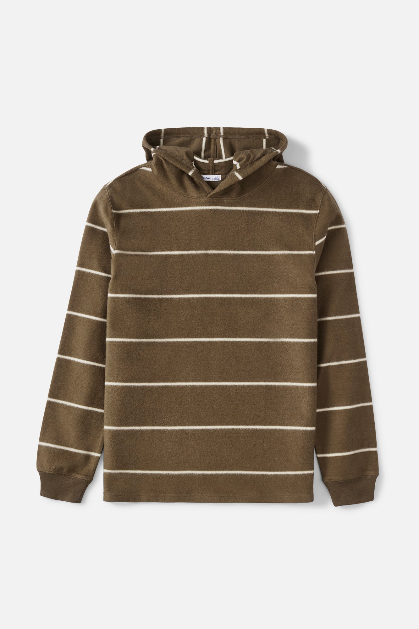 The Parks Hood is made from a custom yarn-dyed stripe fleece, which is reversed and then brushed for an ultra-soft finish.