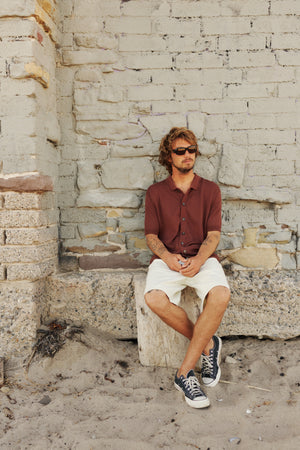 The Blake Knit Button Up brings a relaxed sweater-knit feel in a cotton–recycled polyester blend. Comfortable, versatile, and spring-ready.