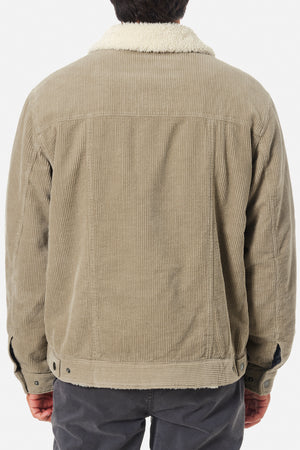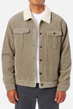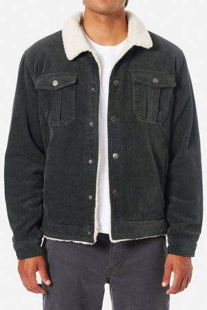 The Harris Corduroy Jacket features a 100% cotton corduroy shell, custom sherpa body liner, taffeta sleeve lining, sherpa collar, as well as front welt pockets, and chest patch pockets.