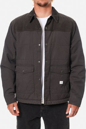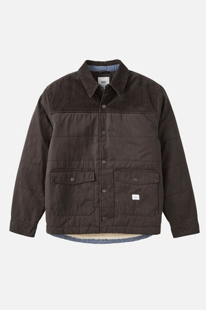 The Yukon Jacket is a 100% cotton snap-down jacket featuring a cotton canvas shell, a custom sherpa body liner, taffeta sleeve liners, and patch pockets with side-entry hand pockets.