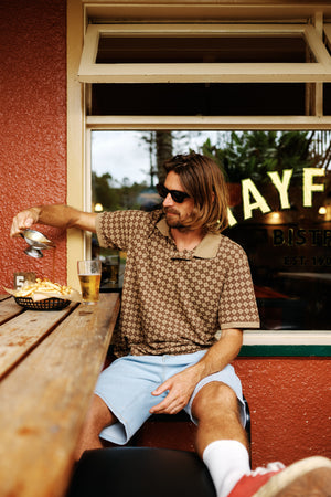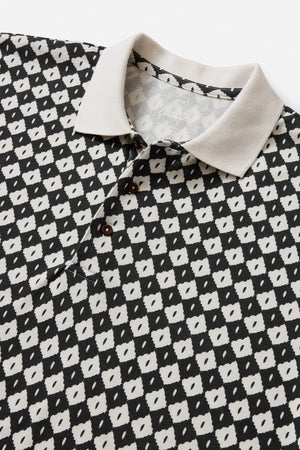 The Check Polo showcases one of our favorite patterns from our Check Sweater. It is made from cotton pique and features a three-button placket with collar.