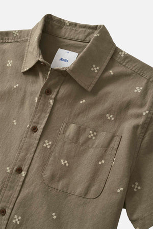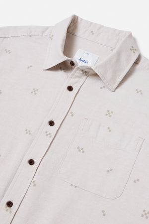 The Cube Shirt features a custom cube graphic on a breathable cotton linen slub blend.