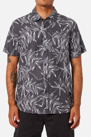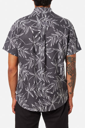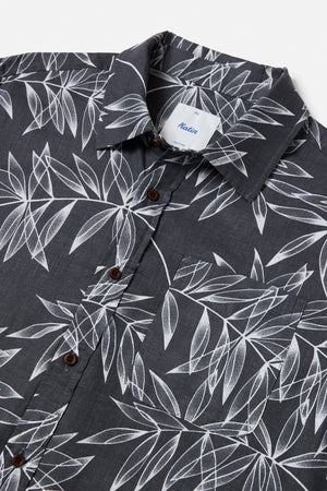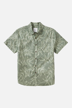 The Matcha Shirt features a hand-drawn matcha leaf print on a breathable cotton-linen blend.
