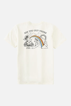 With art inspired by a tropical destination greeting card, the Shangri-La Tee is constructed of ultra-soft, 100% Organic Cotton that has been custom-dyed for effortless style and extended comfortability.
