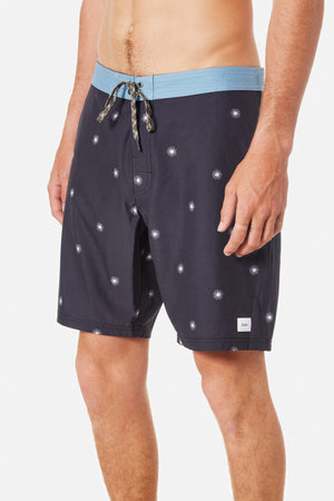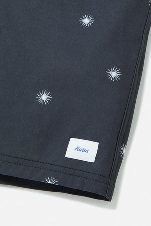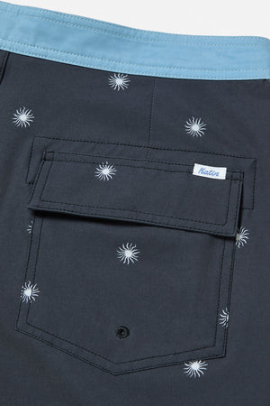 The Shine Hybrid Trunk is made with a blend of Repreve recycled polyester and spandex, and features 4-way stretch technology. Featuring a minimal sun pattern, contrast waistband, front slash pockets, and an interior stash pocket for convenience.