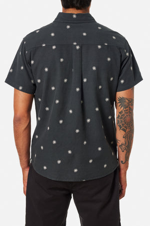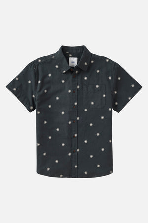 The Shine Shirt features a custom sun graphic on a breathable cotton linen blend.