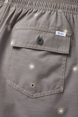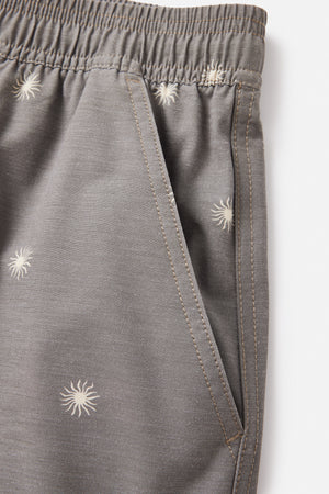 Featuring a custom sun pattern, the Shine Volley comes in a new tri-blend fabric, featuring Repreve recycled polyester. Front slash pockets, an elastic waist, mesh brief lining and an interior stash pocket, ready for the beach or day-to-day.