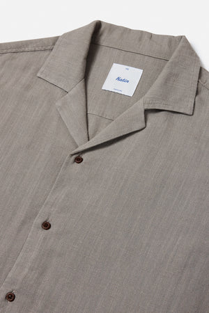 The Teller Shirt is perfect for all seasons, featuring a soft rayon-linen blend fabric and a camp collar, making it ideal for dressing up or down.
