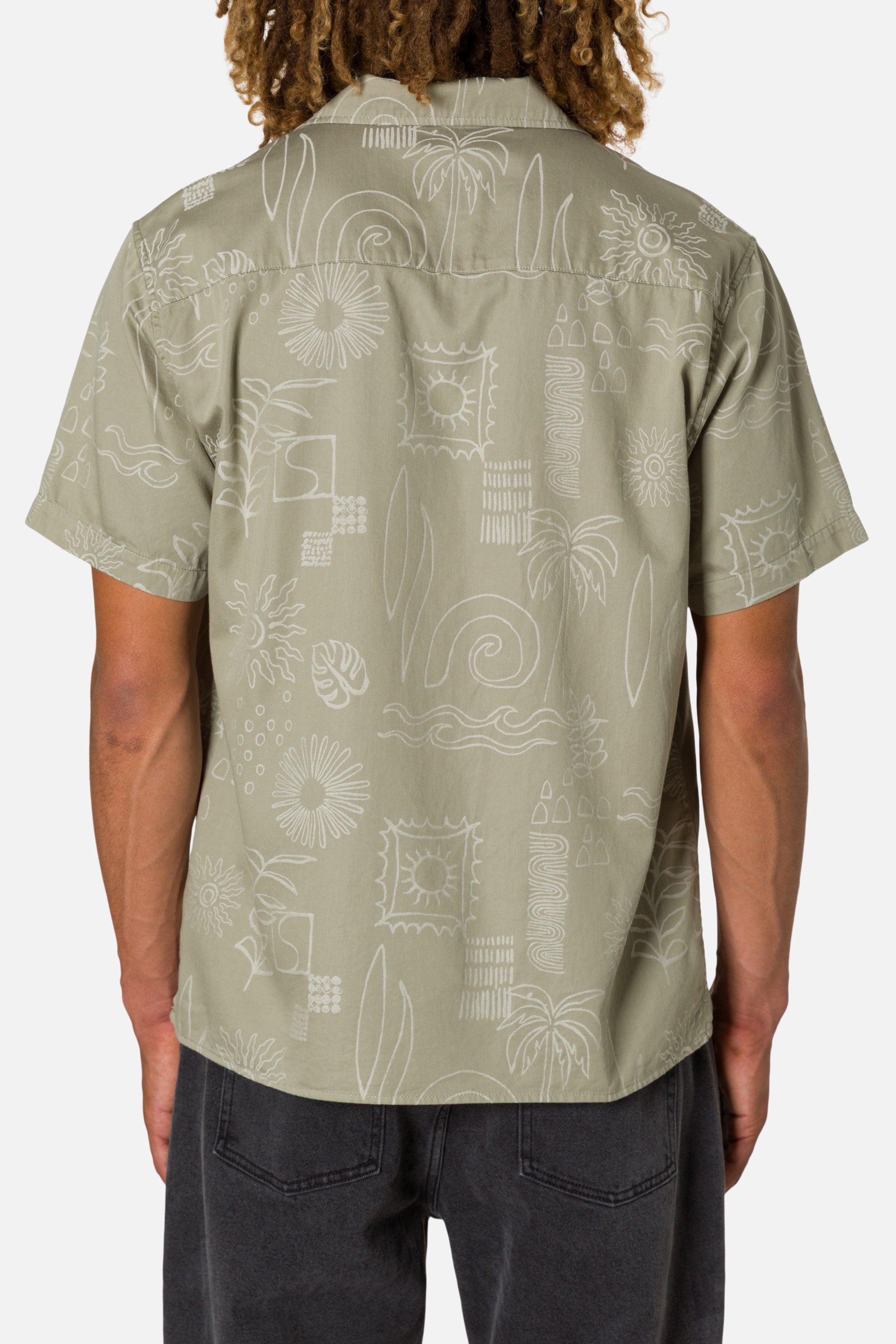 The Habitat Shirt uses a breathable cotton jacquard to give the pattern quiet structure. Its soft drape and relaxed collar make it ideal for mild, warm weather.