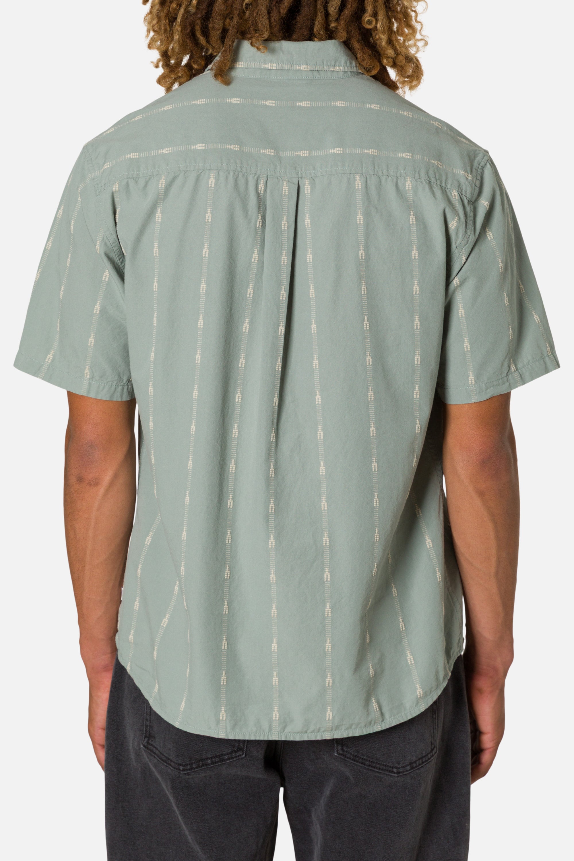 The Zenith Shirt carries a custom jacquard stripe that adds depth without pushing too hard. Light fabric and fit keep it comfortable under the sun.