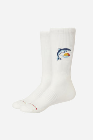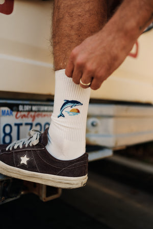 The Dolphin Sock uses a premium combed cotton blend and features a custom Katin jacquard dolphin graphic.