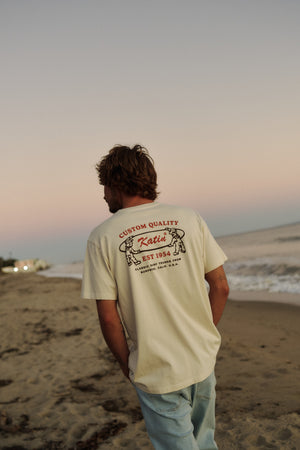 The Blanks Tee draws from the look of local surfboard shaping and glassing shops, crafted from organic cotton with a clean, modern finish.