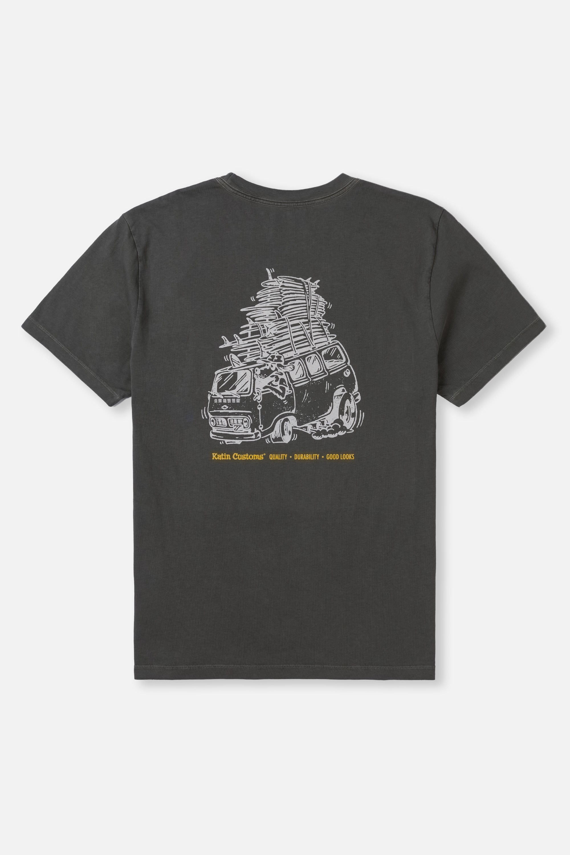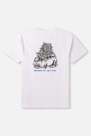 The Haulin Tee carries a single-color 70s surf illustration, printed on breathable organic cotton for easy everyday wear.