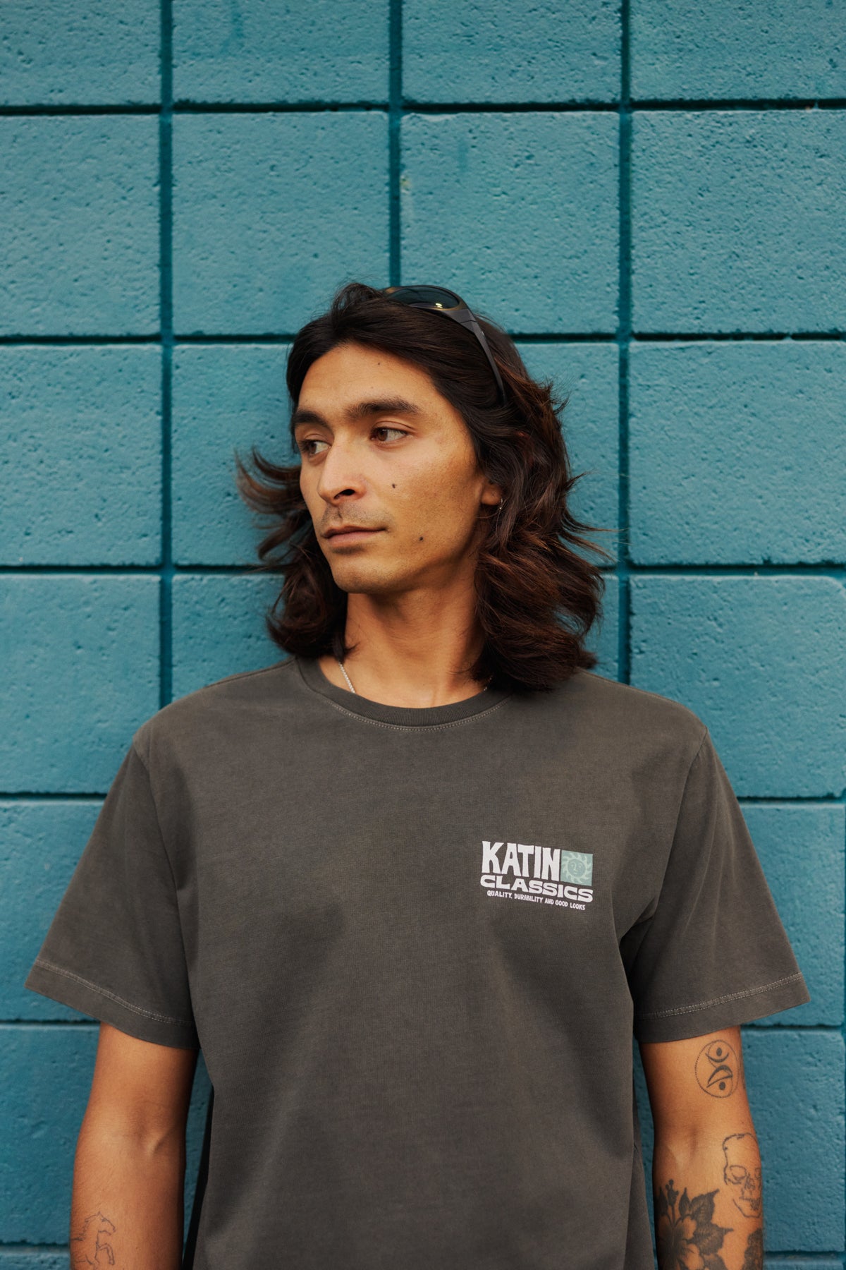 The Helios Tee showcases a hand-painted sign–style graphic on soft organic cotton, keeping the look clean and grounded.