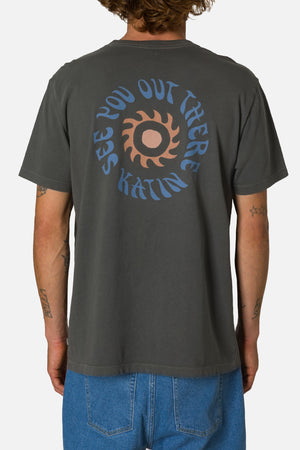 The Illusion Tee blends 70s typography with earth-art graphics, crafted from organic cotton with a smooth, modern handfeel.