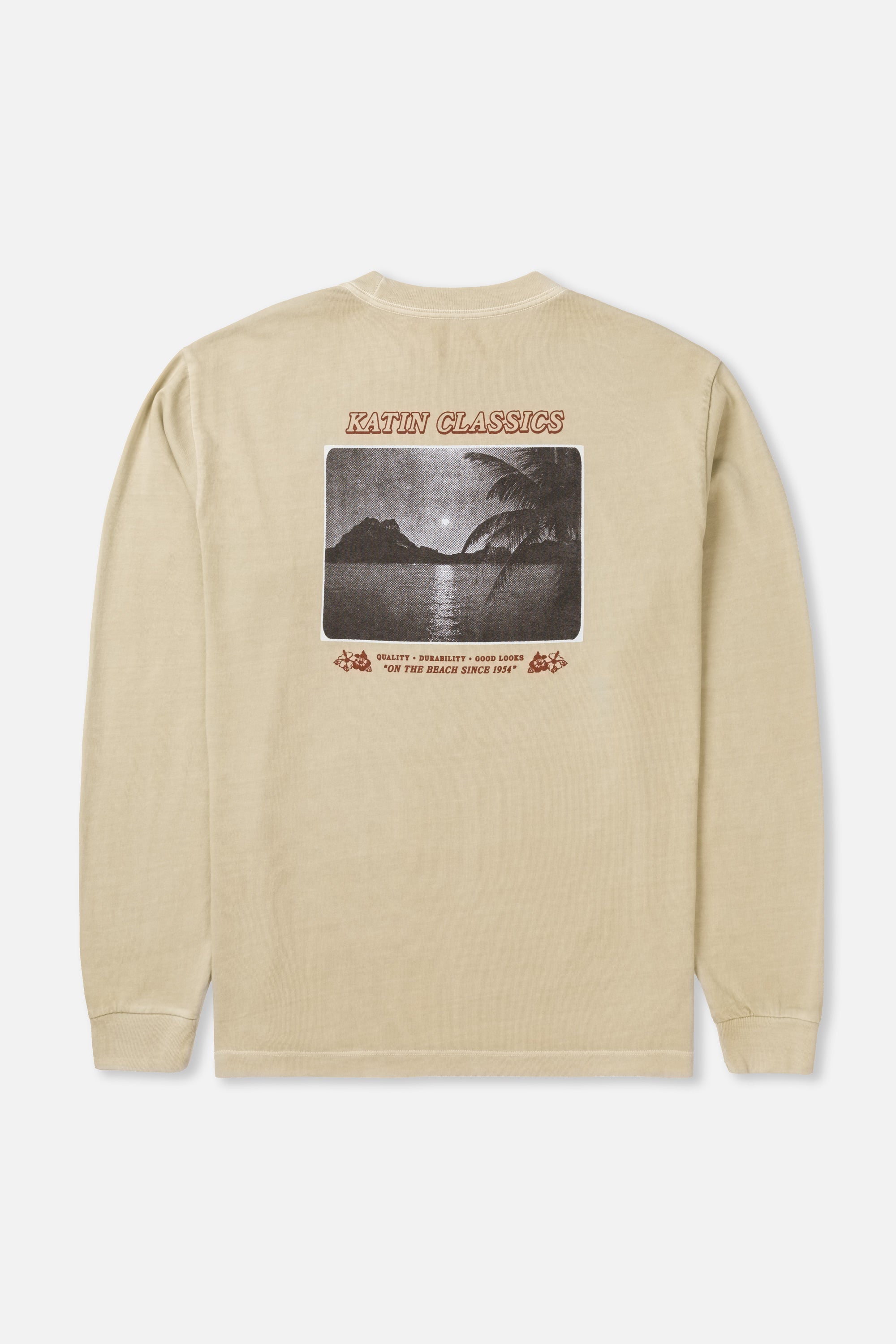 The Repose Box Fit LS Tee brings vintage travel-postcard artwork to a long-sleeve box fit, printed on organic cotton with a soft, relaxed drape.