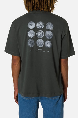 The Specimen Box Fit Tee showcases artwork inspired by archival fossil records, printed on organic cotton with a clean, structured feel.