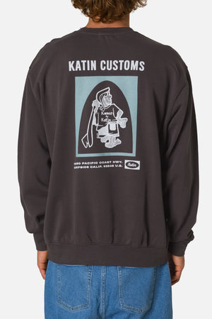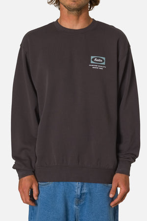 The Assembly Crewneck showcases graphics drawn from classic surf-shop signage, made with soft cotton-blend fleece and a vintage wash for comfortable layering.