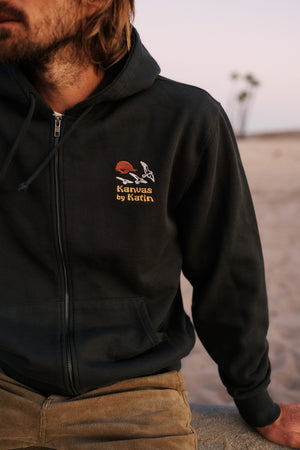 Featuring an embroidered graphic pulling inspiration from a vintage surf inn, the Sunset Zip Hoodie is made from an 80/20 cotton/polyester blend fleece with a vintage wash for endless comfort. Our Fleece has the perfect weight to be your favorite hoodie year-round.