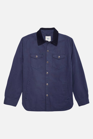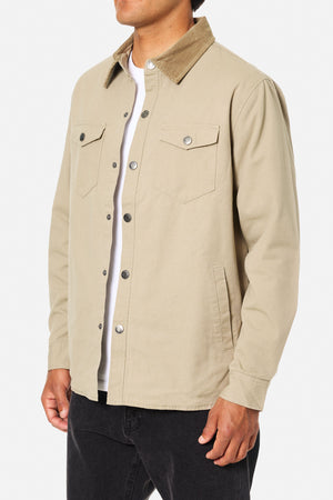 The Campbell Shirt Jacket is made from 100% cotton canvas and features a custom flannel body liner, snap front closure, poly sleeve liner, corduroy collar, front welt pockets, and patch chest pockets.